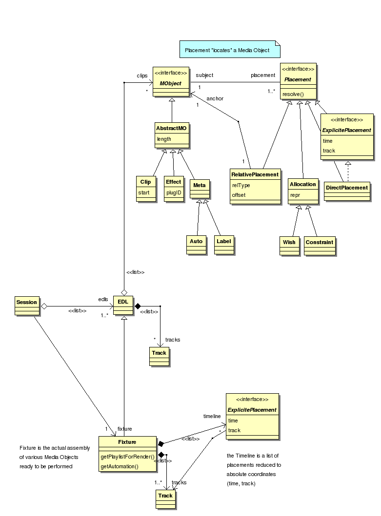A simple example showing how the actual objects are placed in the Fixture (=definitive playlist). It shows a Video and Audio clip placed on two tracks