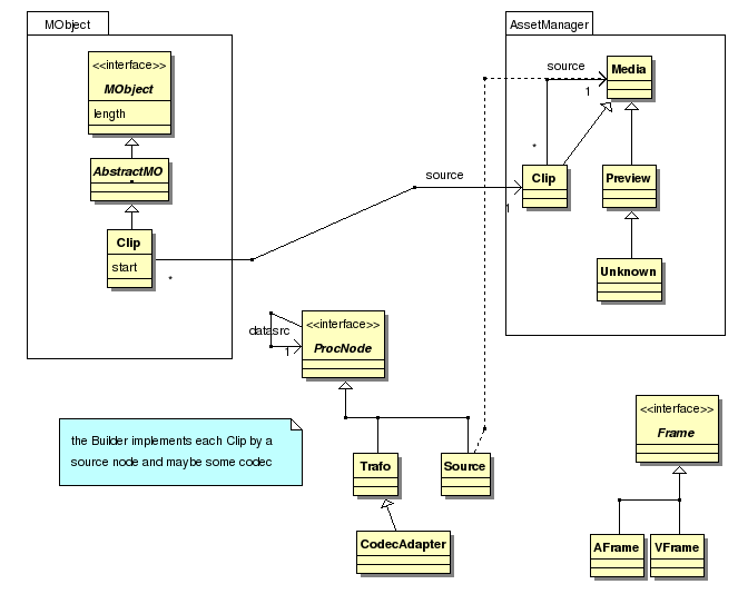 A simple example showing how the actual objects are placed in the Fixture (=definitive playlist). It shows a Video and Audio clip placed on two tracks